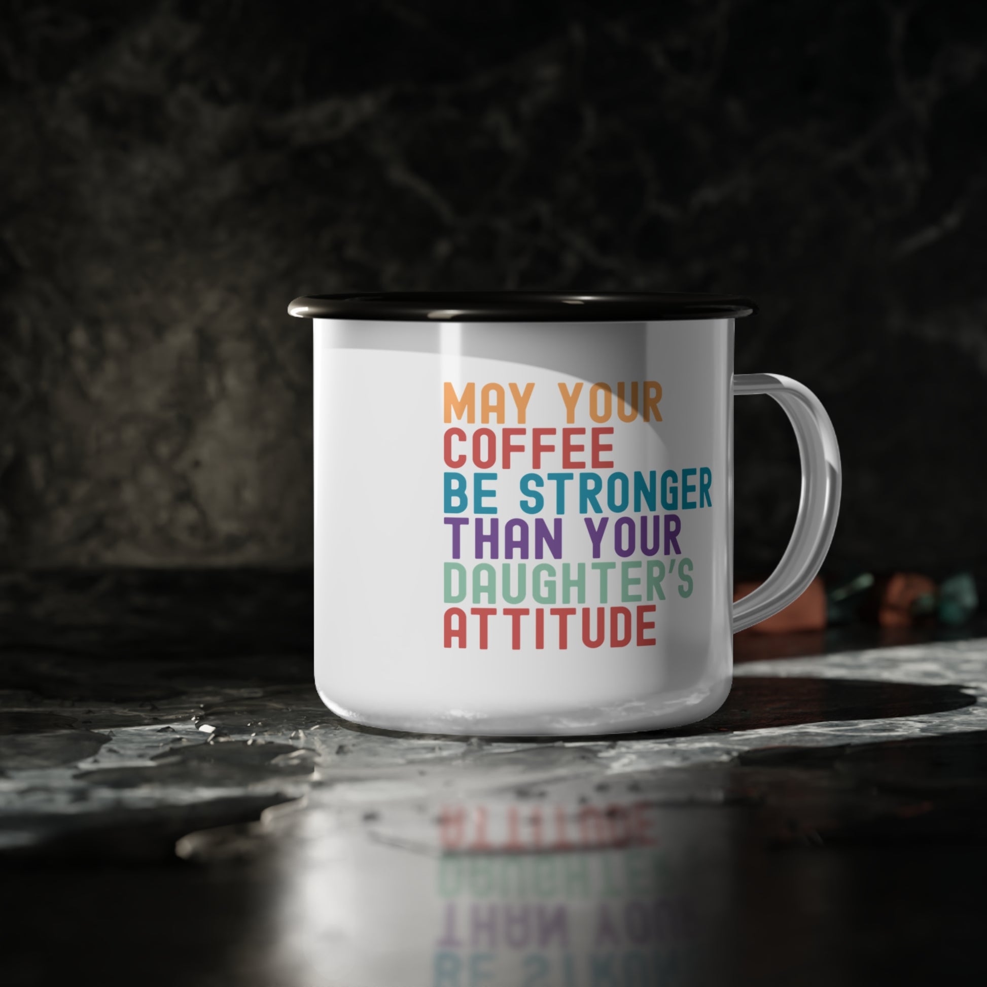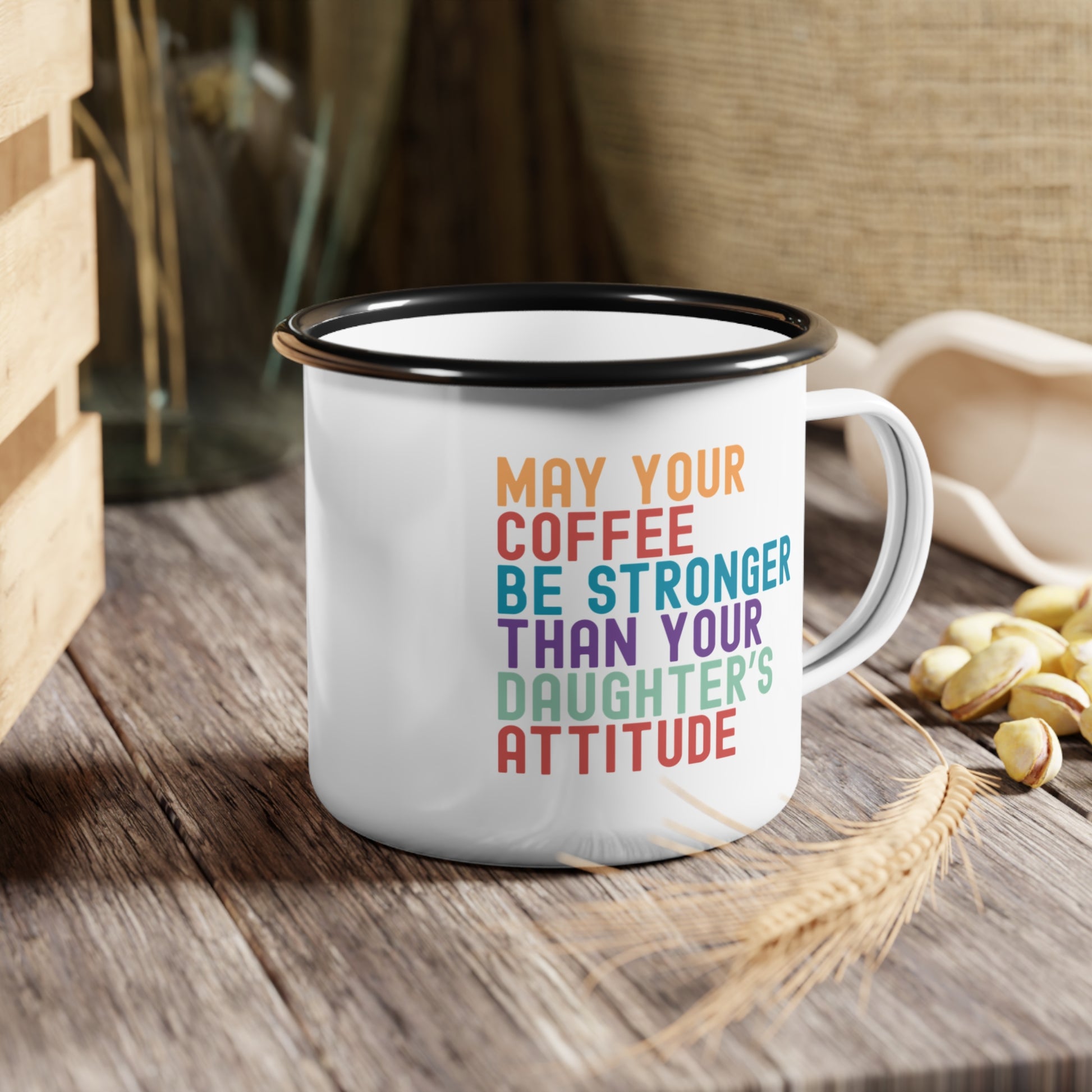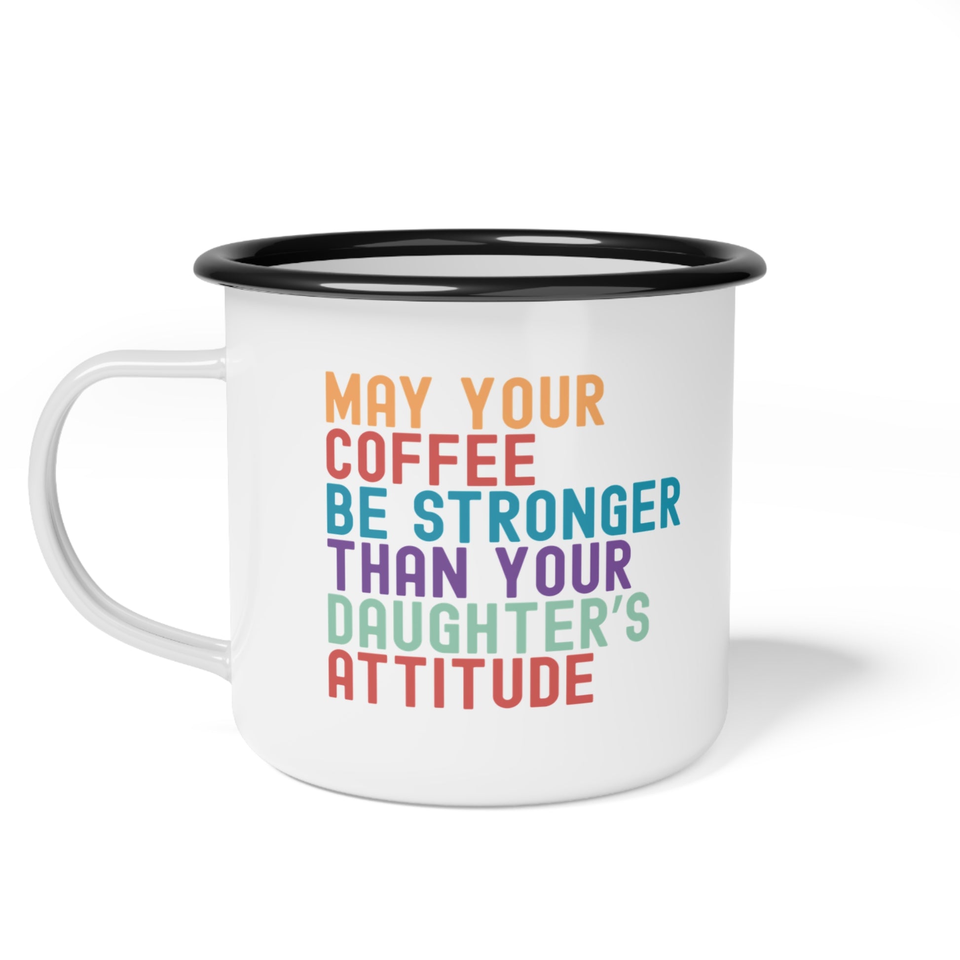 Some battles are best fought with caffeine—especially when you're raising a strong-willed daughter. Whether you're camping, glamping, or just hiding in the backyard for five minutes of peace, this 12oz enamel camp mug is your perfect sidekick.