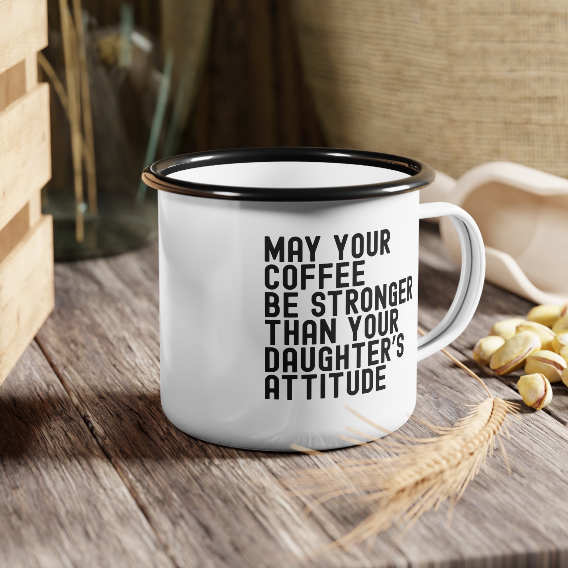 Some battles are best fought with caffeine—especially when you're raising a strong-willed daughter. Whether you're camping, glamping, or just hiding in the backyard for five minutes of peace, this 12oz enamel camp mug is your perfect sidekick.